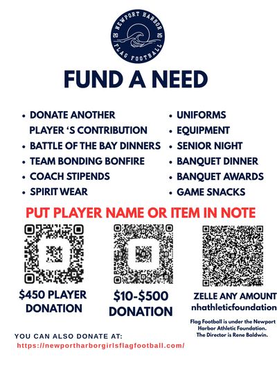 The Newport Harbor Girls Flag Football program is partially funded by the school